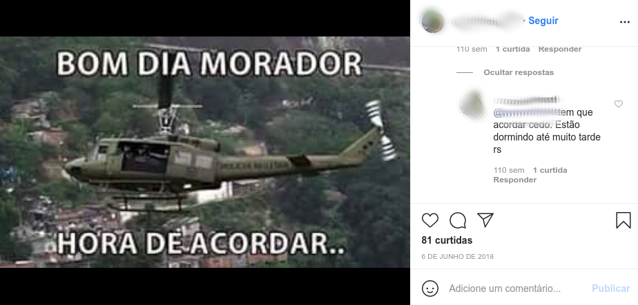 "Good morning residents, time to wake up!". Public post by a police officer involved in helicopter operations in Rio de Janeiro.