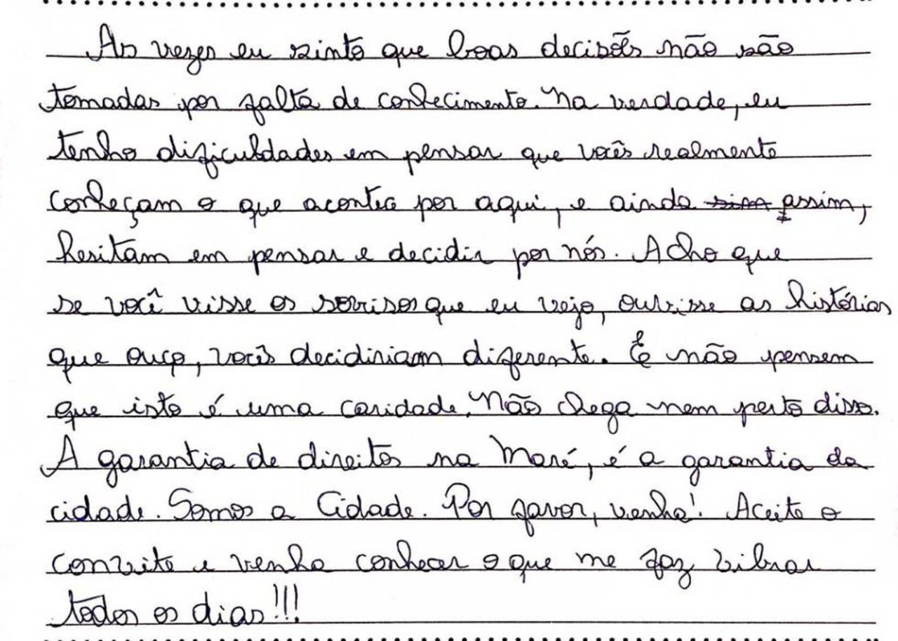 Letter written by one of the children and collected by Redes da Maré.