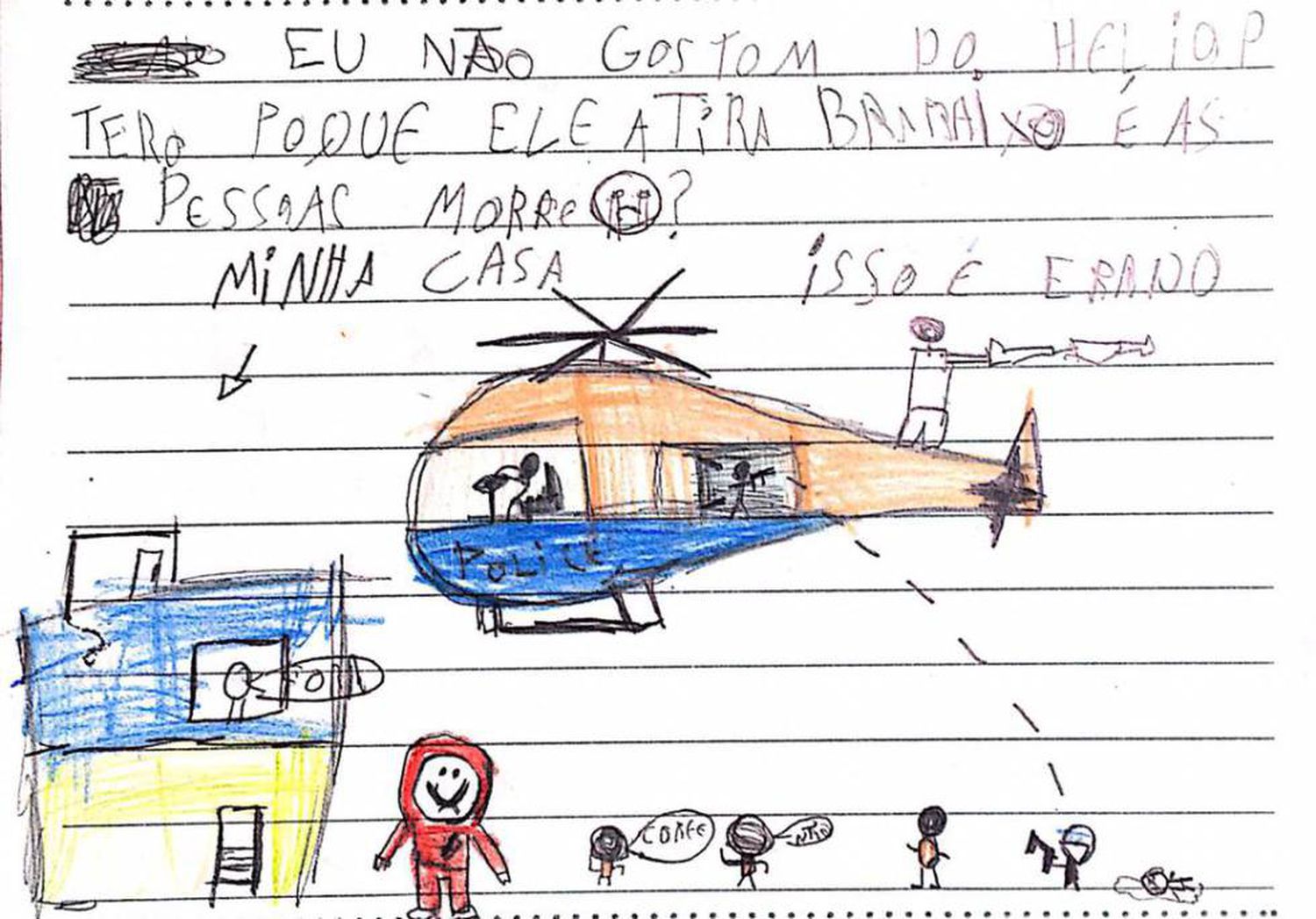 Drawings made by children who live in Maré, in collective letters to the Judiciary system, asking for the interruption in the use of airships.